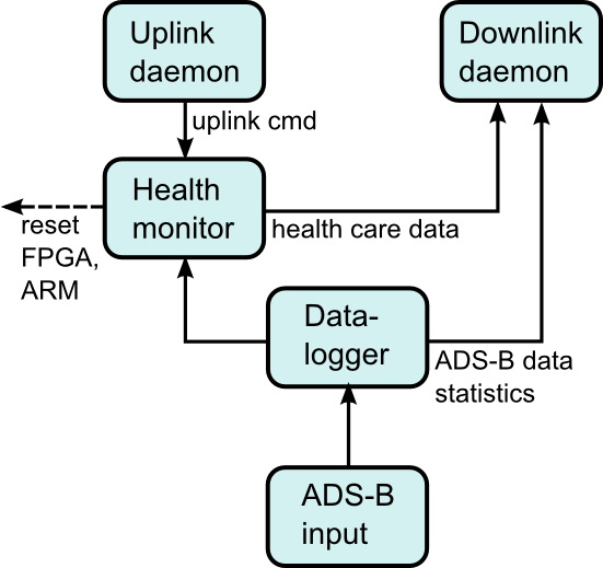 Health care data includes different temperatures of different subsystems and the actually CPU-load of the ARM-computer.
